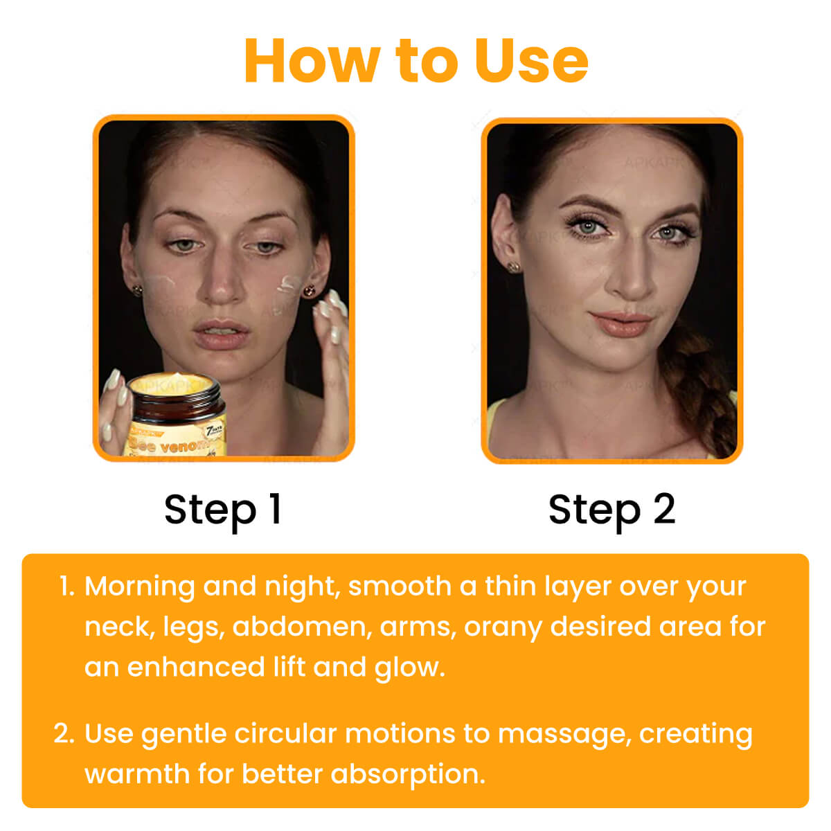 The magic is in the science. Our unique formula uses the gentle power of purified bee venom to work with your skin, not just on it. This innovative ingredient subtly mimics a natural tightening effect, which helps to activate your skin's own renewal process. This action boosts elasticity and promotes a smoother, plumper texture, visibly reducing the look of fine lines and wrinkles. The result? A naturally firmer, more youthful-looking complexion you can feel confident in.