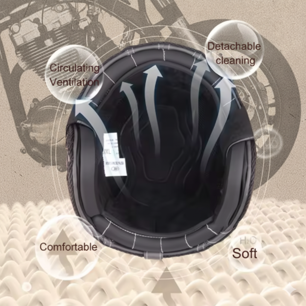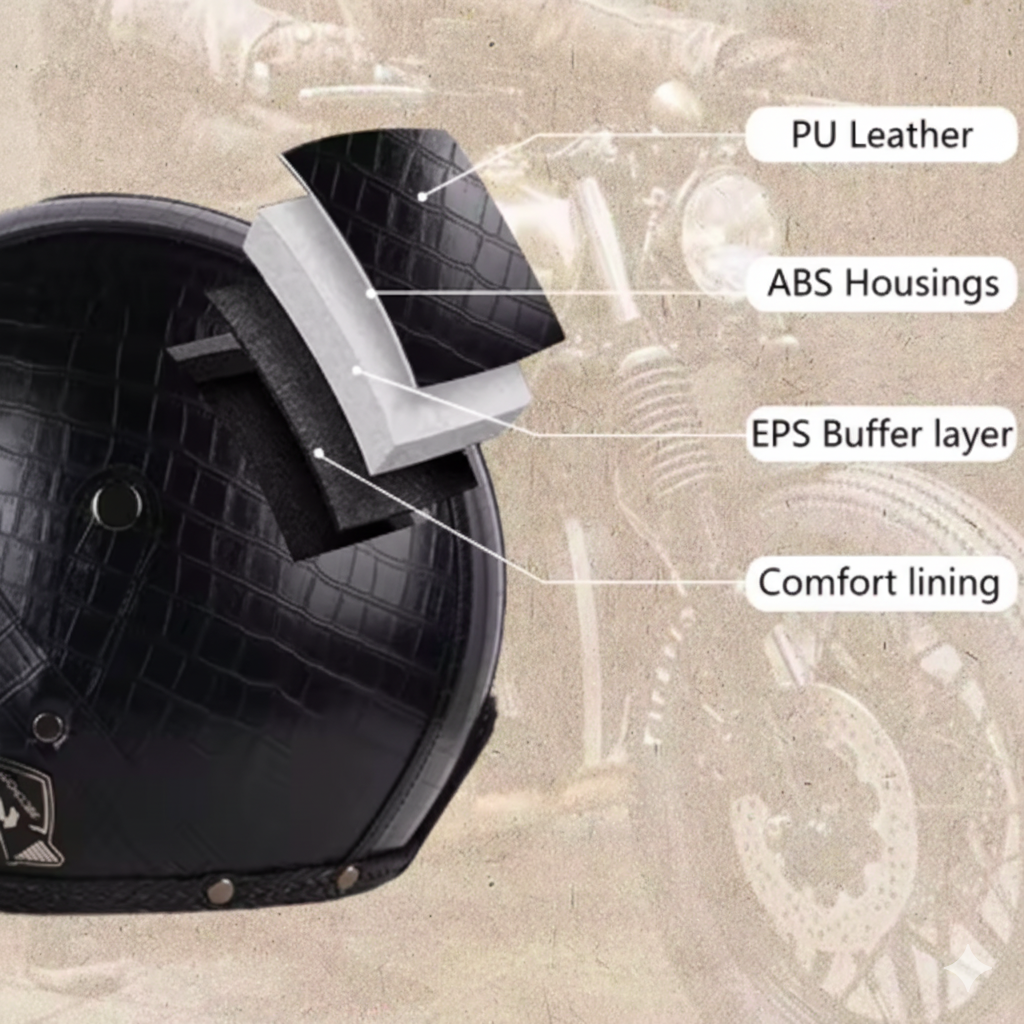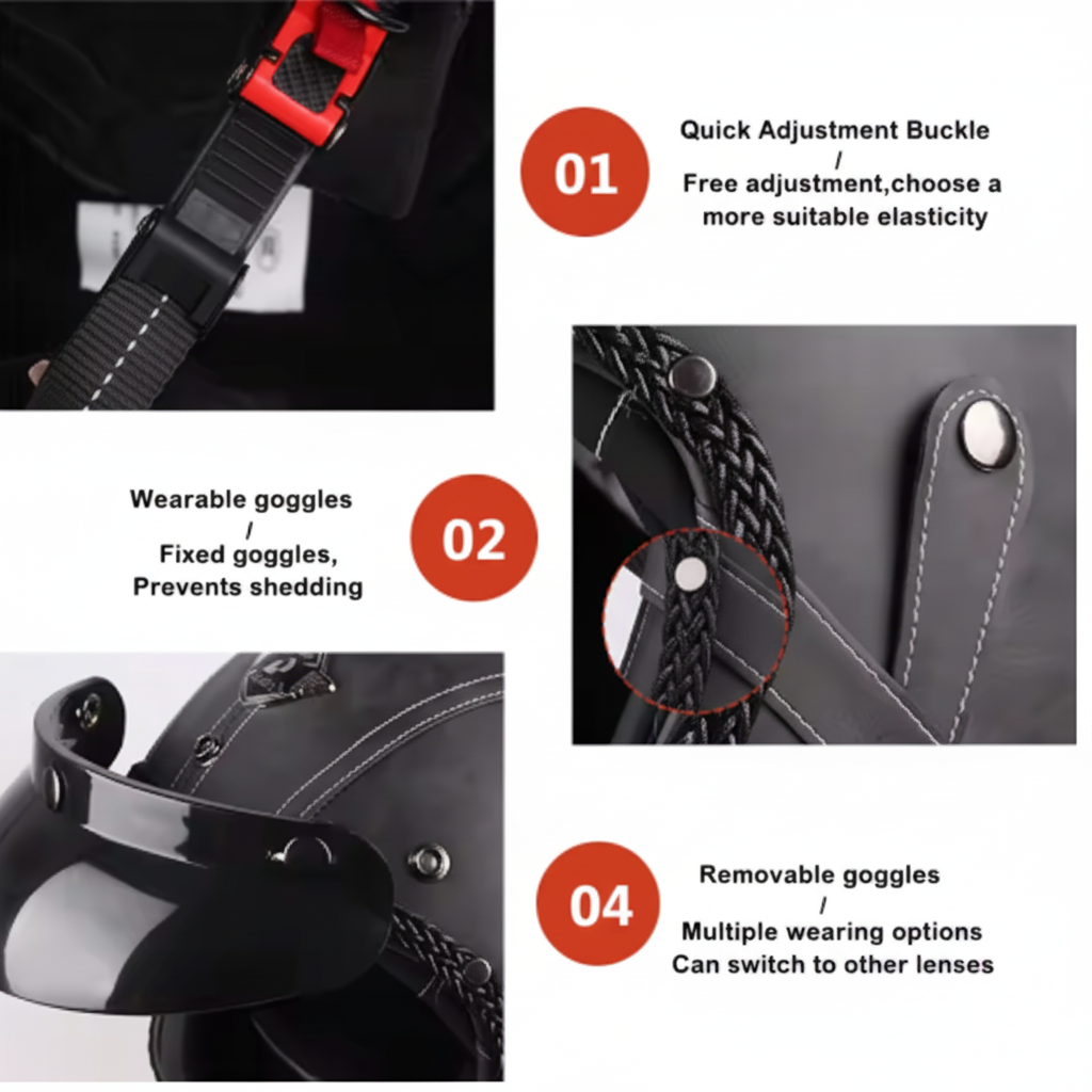 Experience the perfect blend of style and safety with our Retro Vintage Motorcycle Helmet. Crafted from lightweight ABS thermoplastic resin and synthetic leather, this helmet is ideal for cruisers, touring, and bike riders. Enjoy comfort and protection with its removable padded interior, adjustable safety buckle, and versatile goggle attachments.