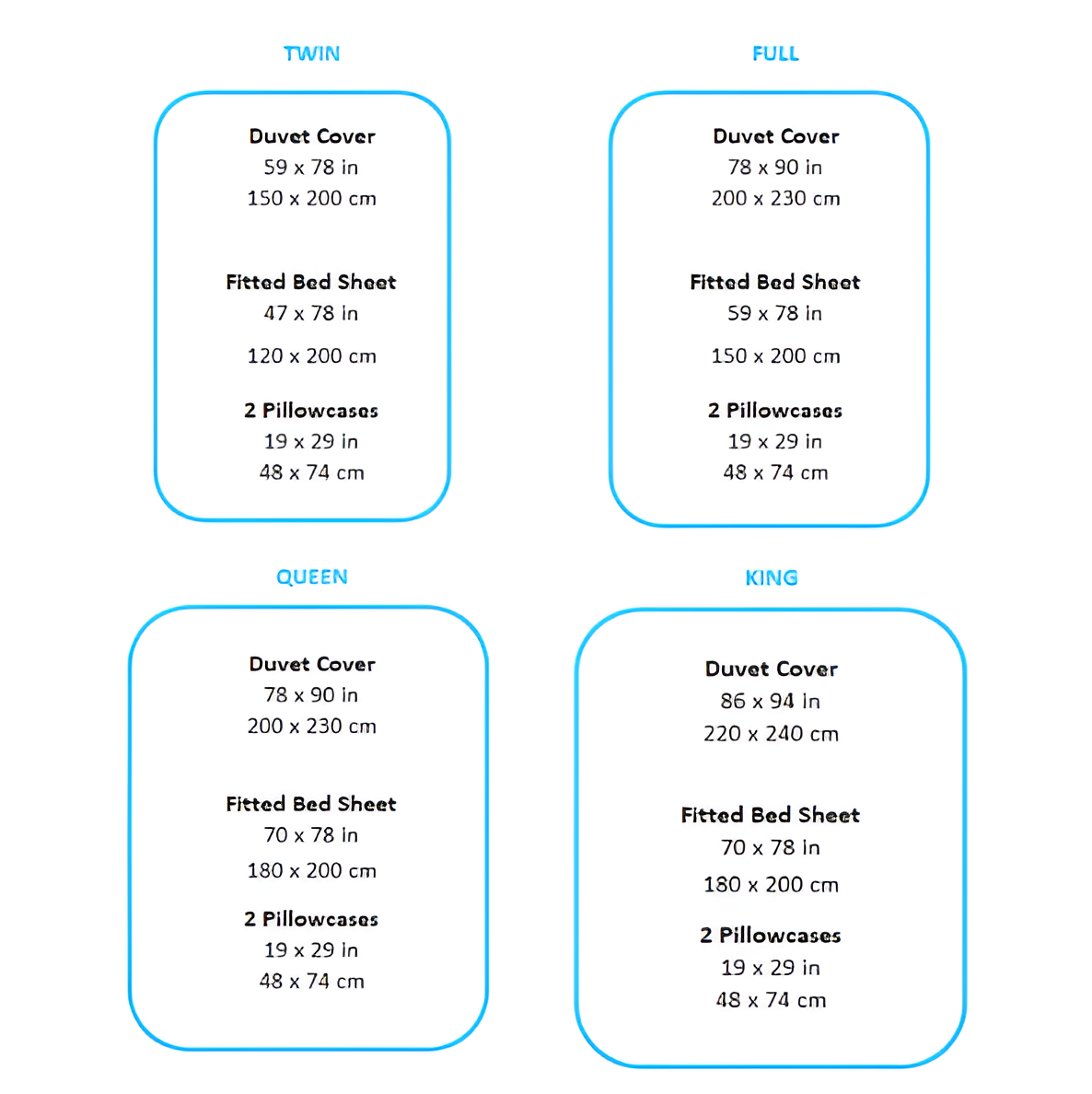 - (Includes one duvet cover, one fitted sheet, and one pillowcase)