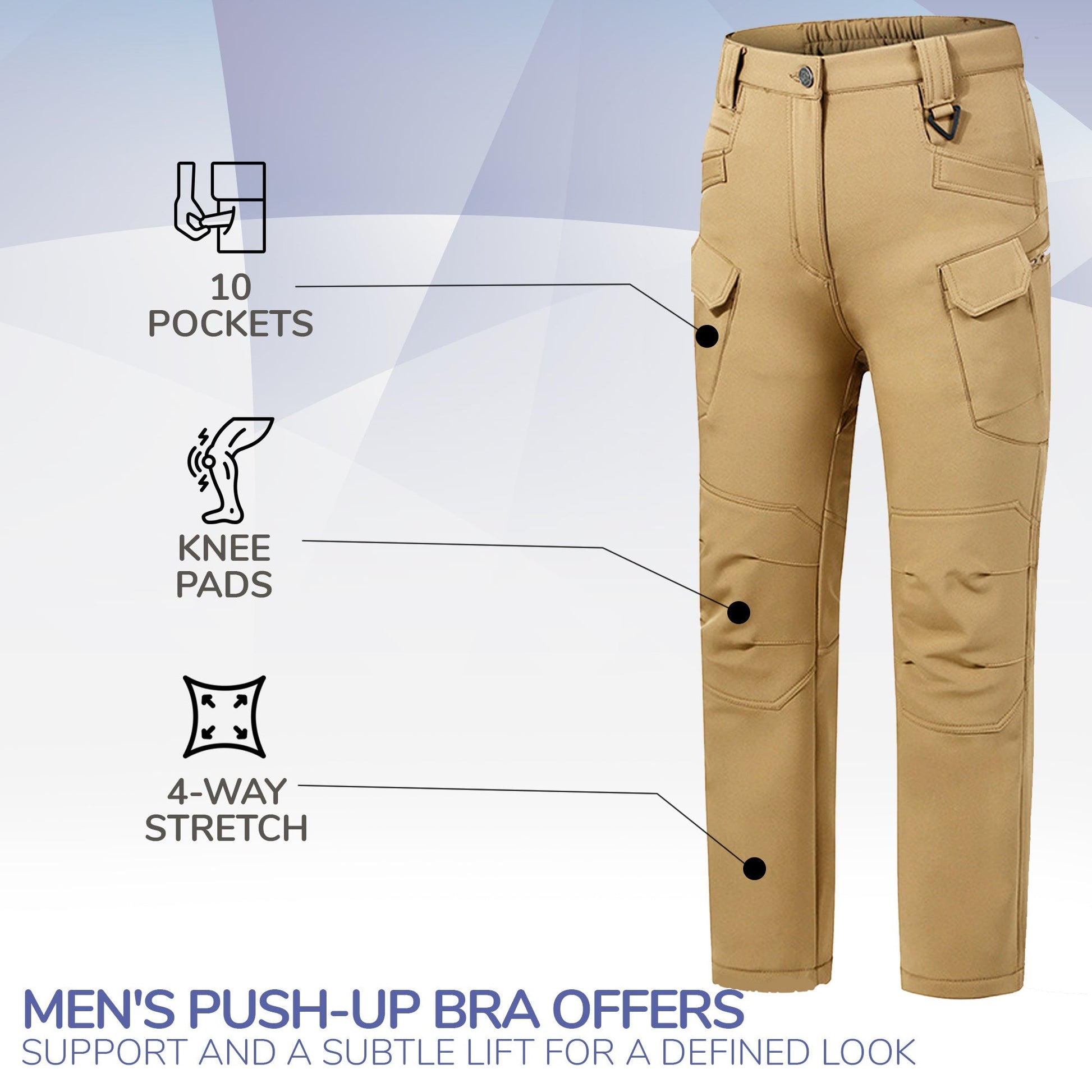 Discover Waterproof Tactical Fleeced Lined Trousers | 10 Pockets, Reinforced Knees & Ideal for Outdoor Work and Sports